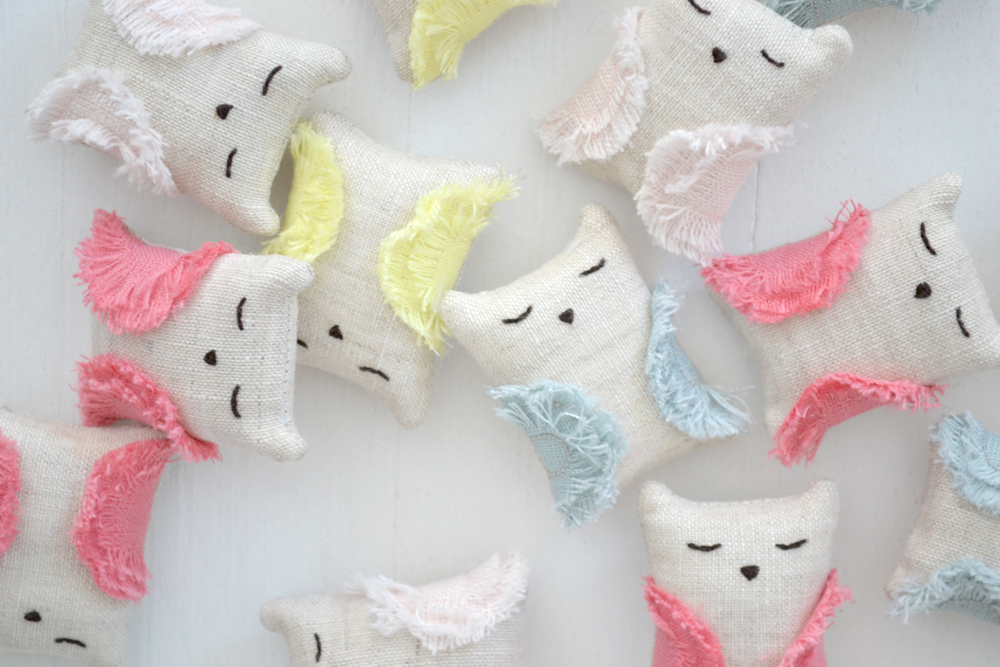 Mini chouette en lin, brodée à la main.